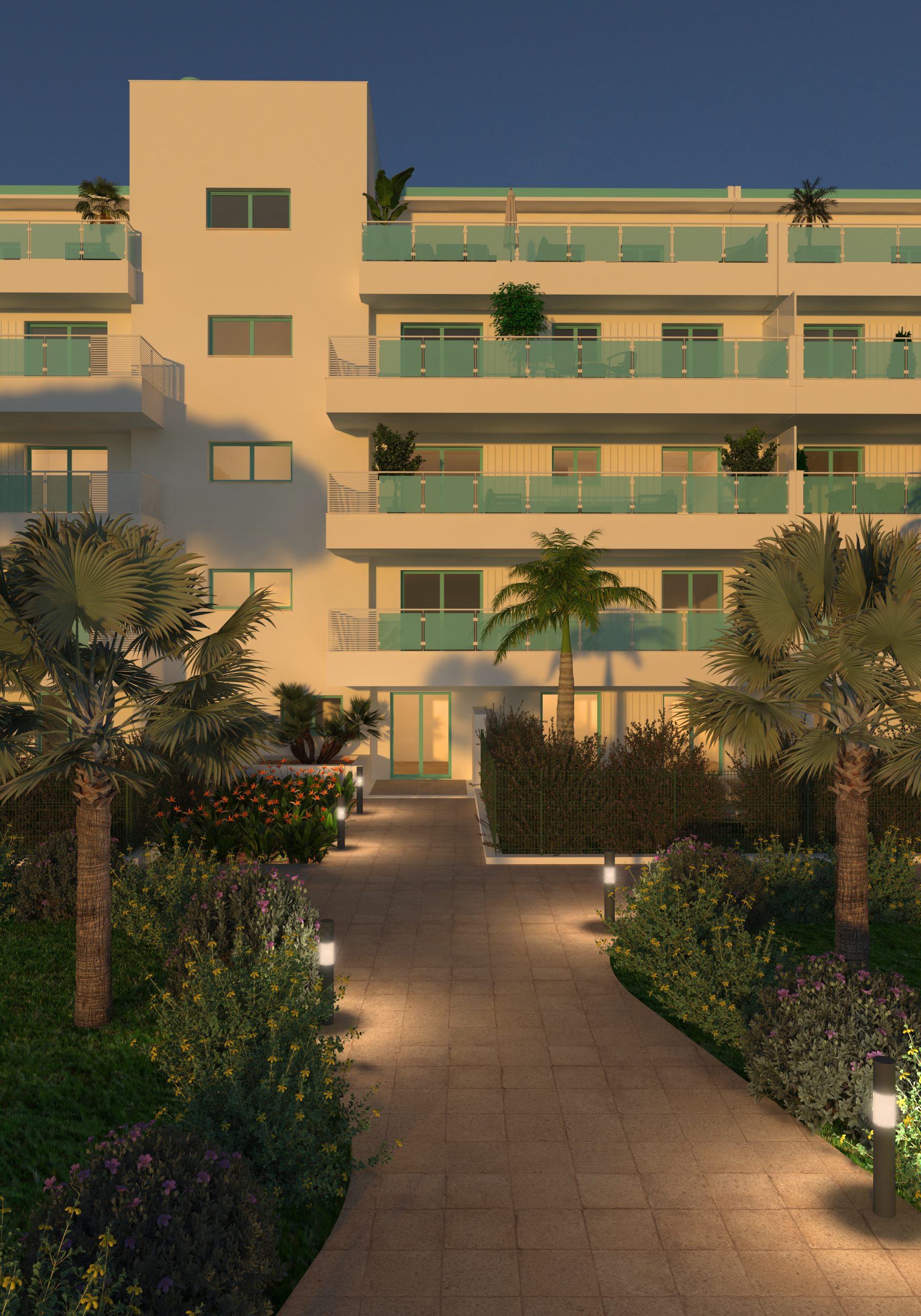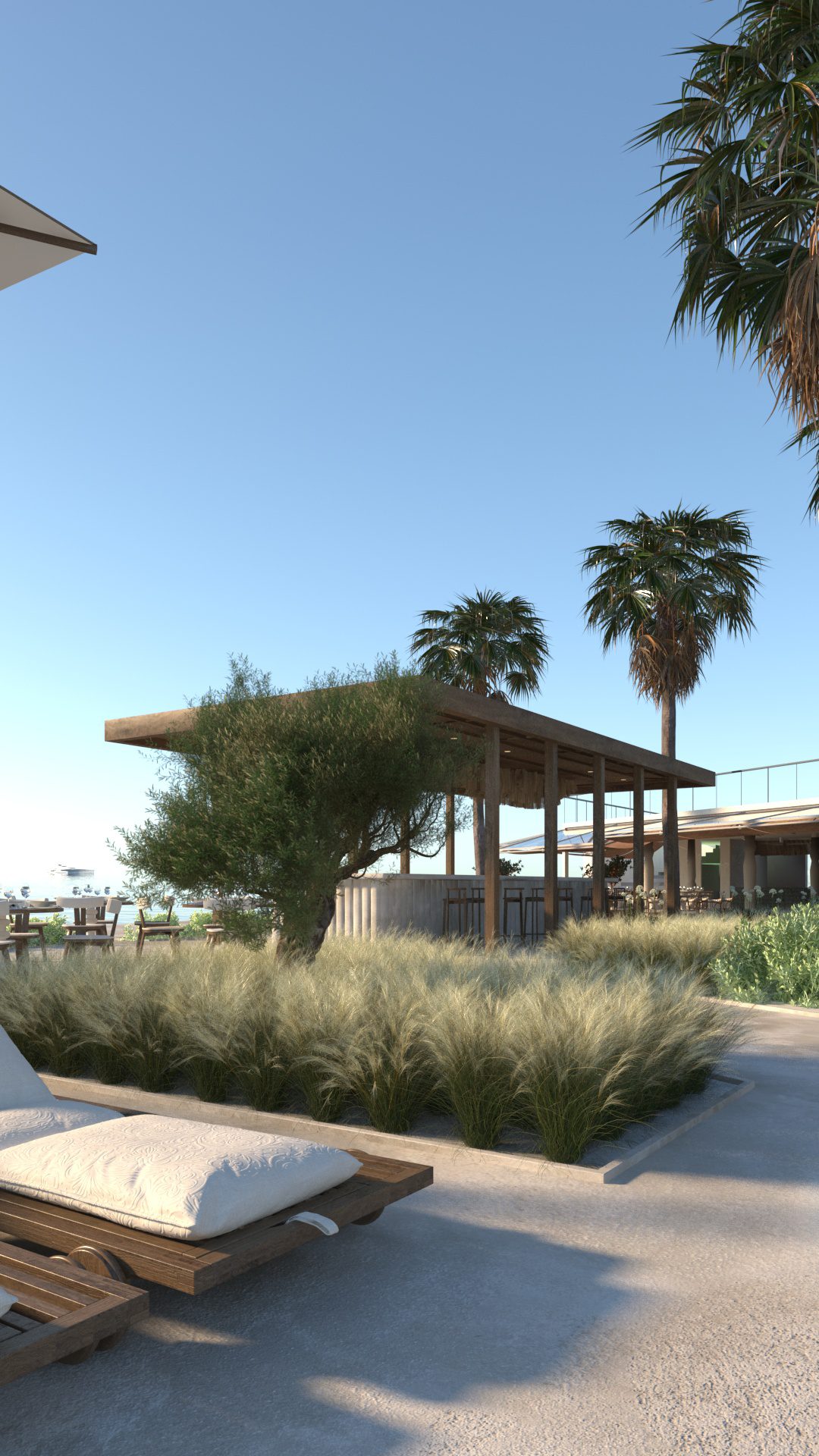 Renders de exteriores, donde mostramos la integración del proyecto con su entorno, la iluminación natural y los materiales con un alto nivel de realismo.